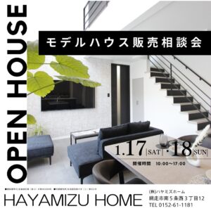 イベント告知 2026.01.12 網走MODEL HOUSE 販売会開催 2025年4月より、たくさんのご家族様にご覧頂きました網走市つくしヶ丘モデルハウスを販売いたします。 日時 ■ 令和8年 1月17日(土).18日(日)10:00~17:00 (ご予約は不要です) 会場 ■ 網走市つくし […]