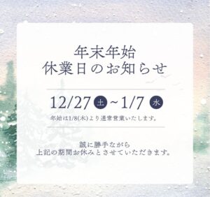 年末年始休業のお知らせ
